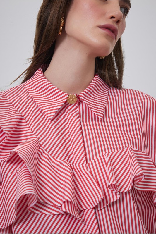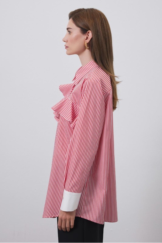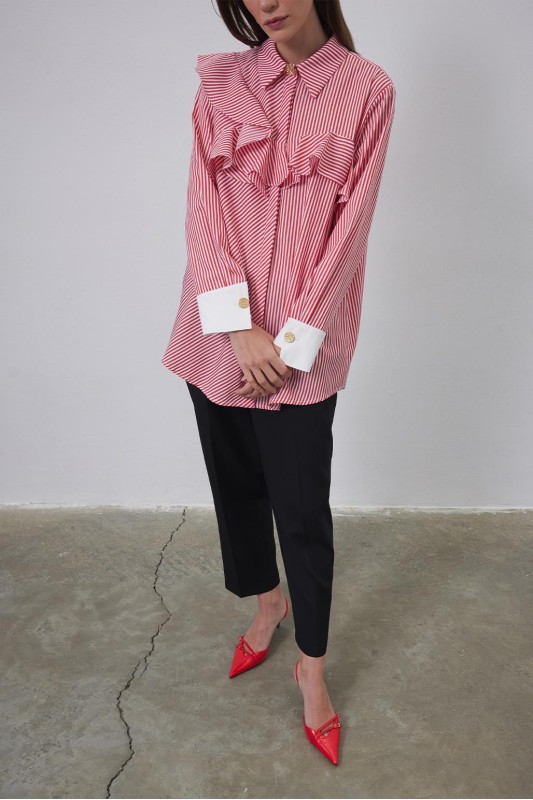 Volanlı Manşet Detaylı Gömlek Kırmızı