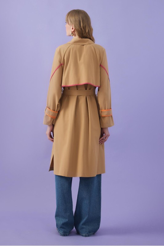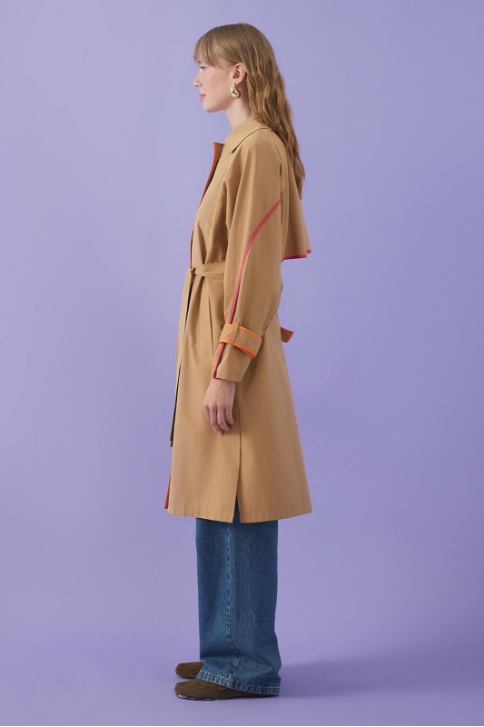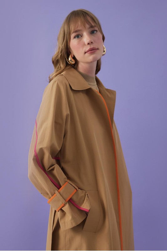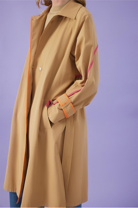 Vespa Renkli Şeritli Trençkot Camel