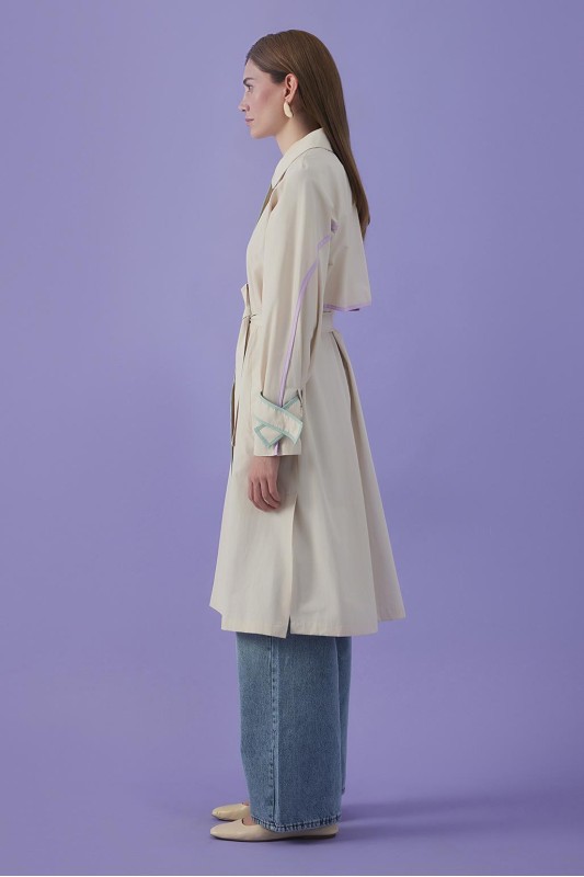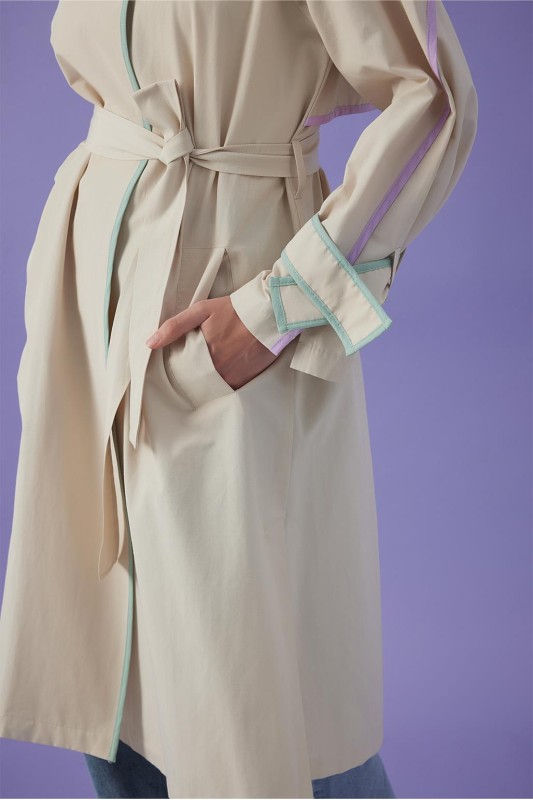 Vespa Renkli Şeritli Trençkot Taş