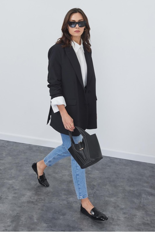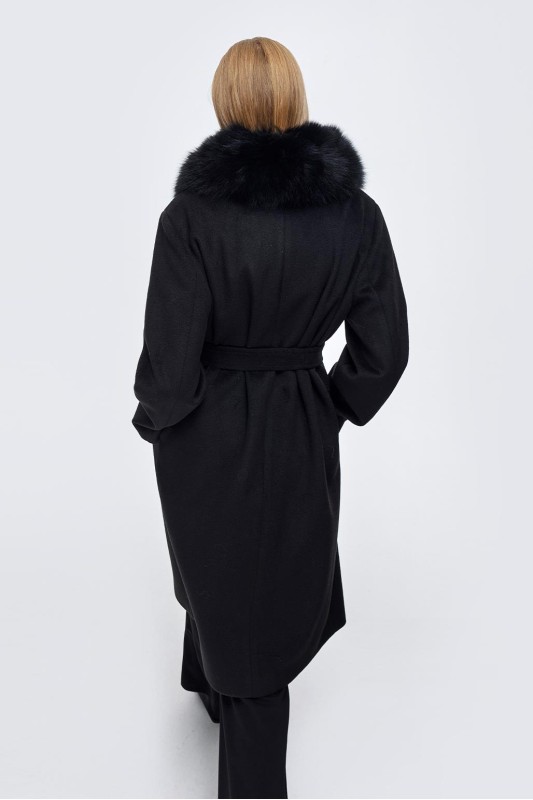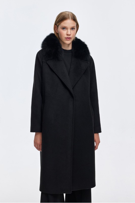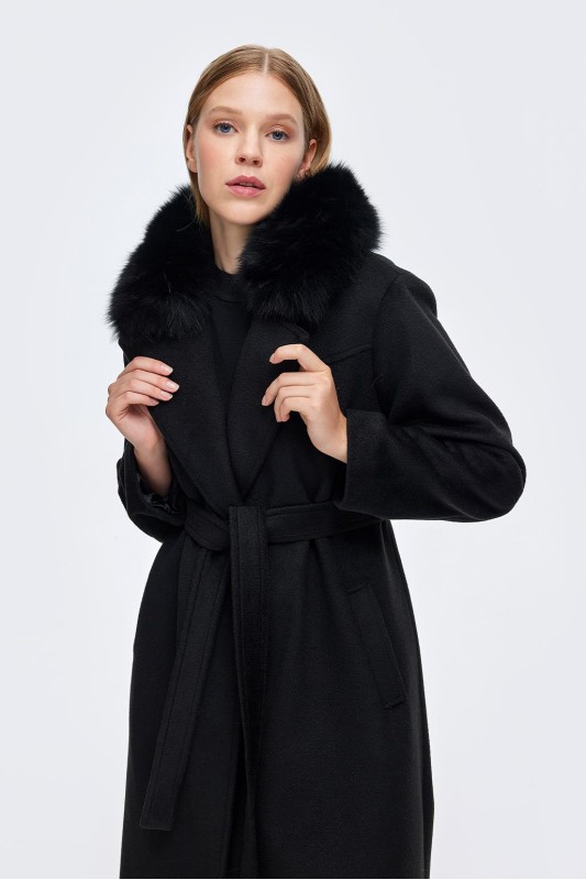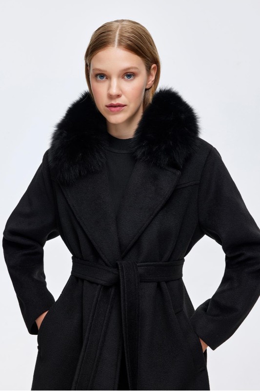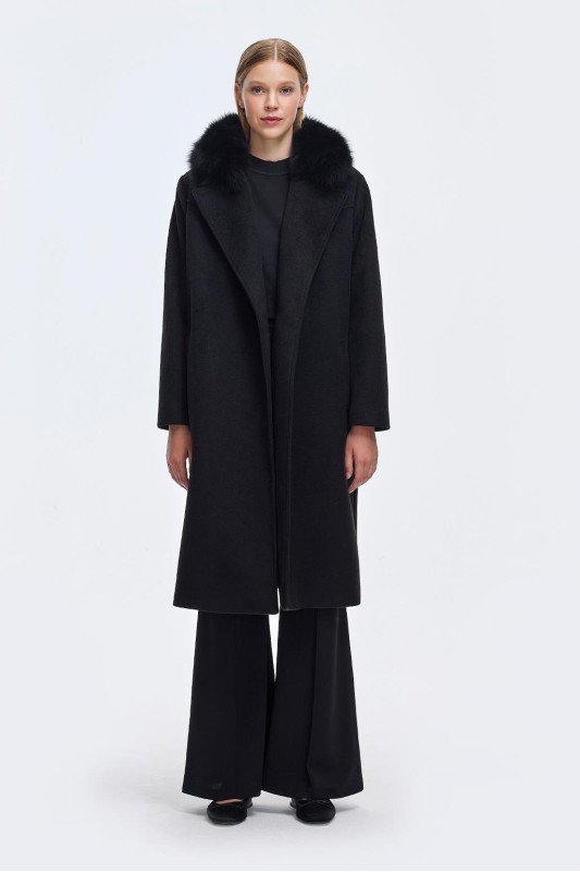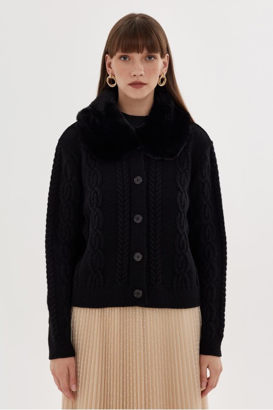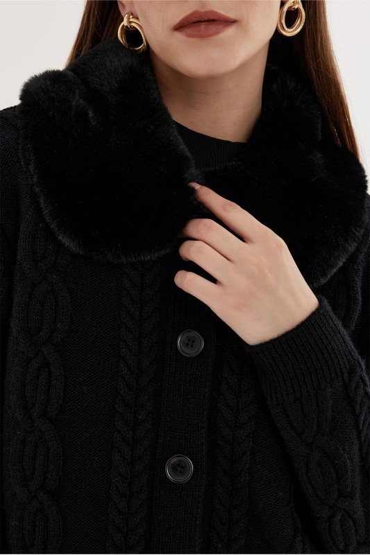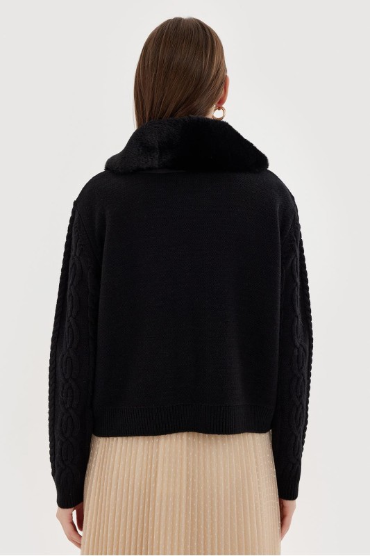 Yaka Kürk Detaylı Triko Hırka Siyah