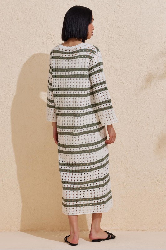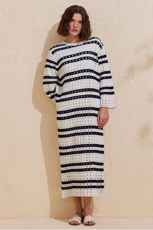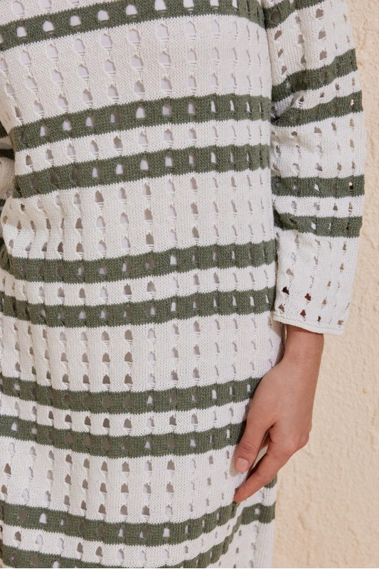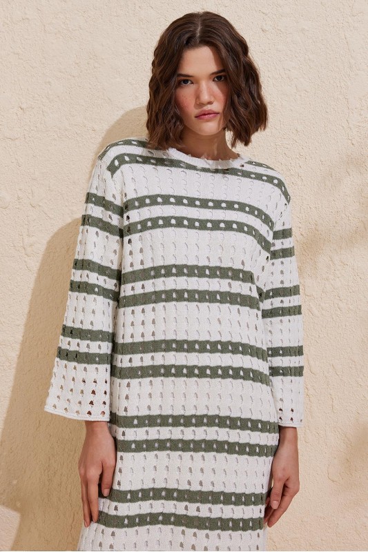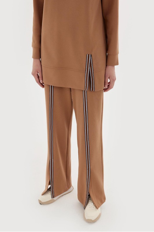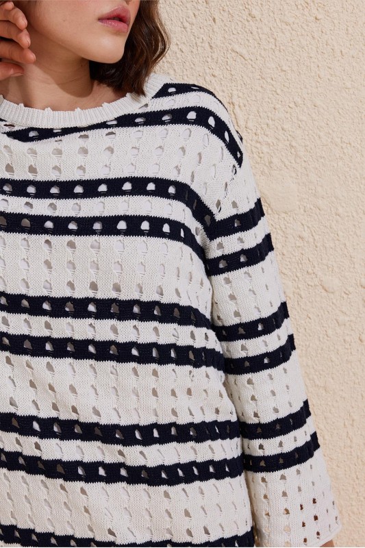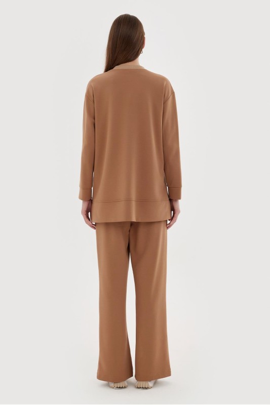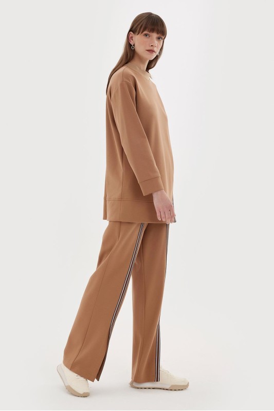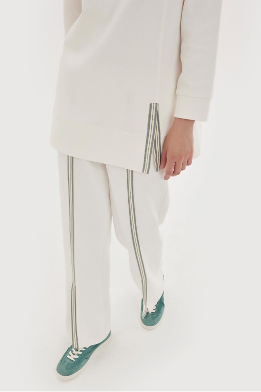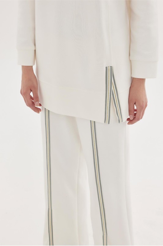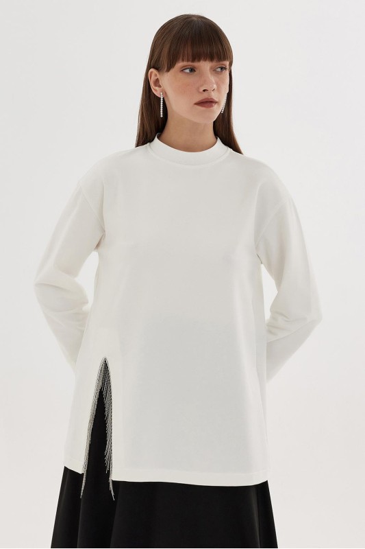 Yırtmaç Taşlı Örme Sweatshirt Ekru