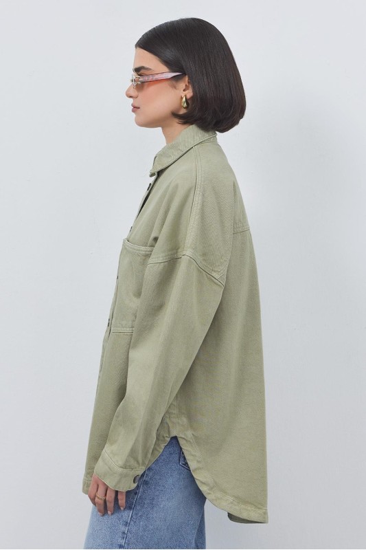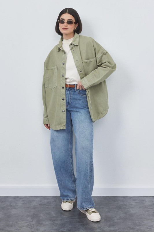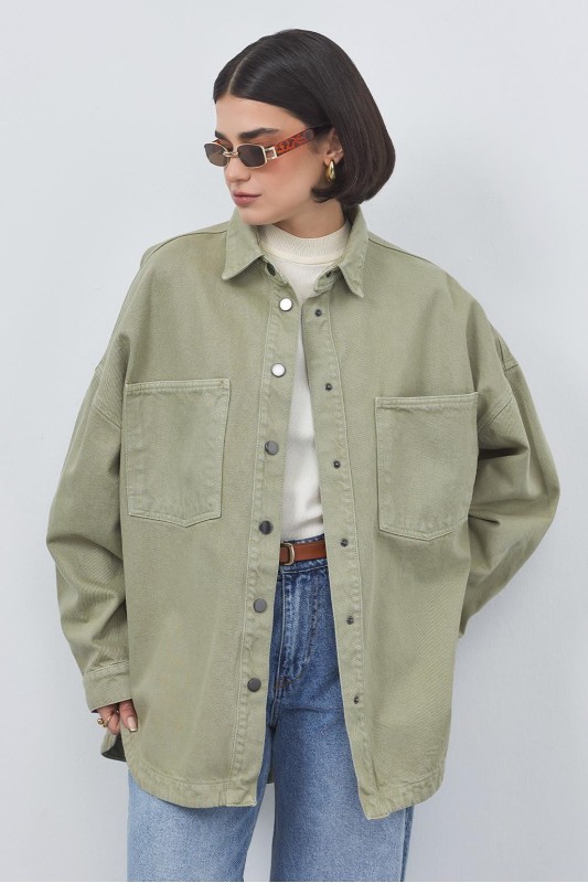 Yıkamalı Gabardin Ceket Haki Yeşil
