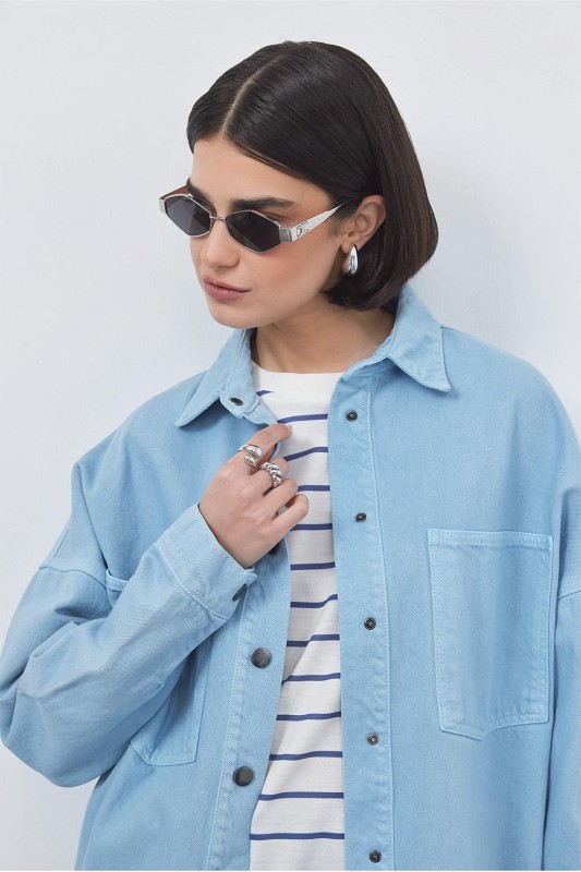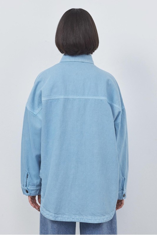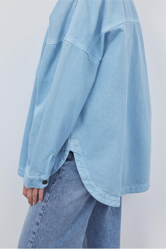 Yıkamalı Denim Kalem Etek Açık Mavi