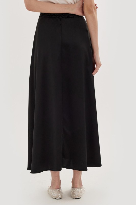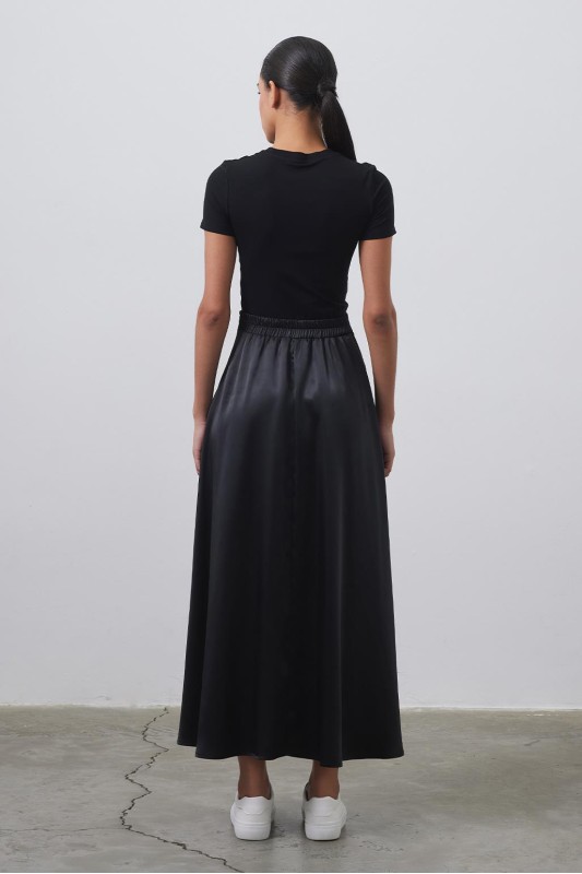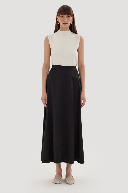 Dena Saten Kloş Etek Siyah