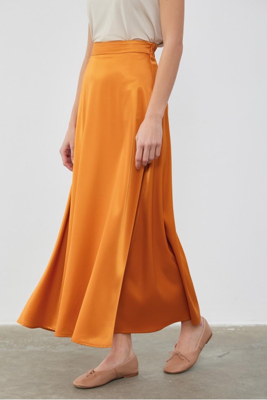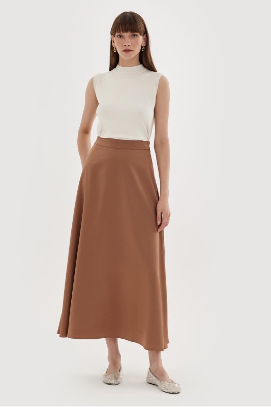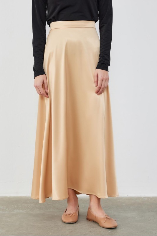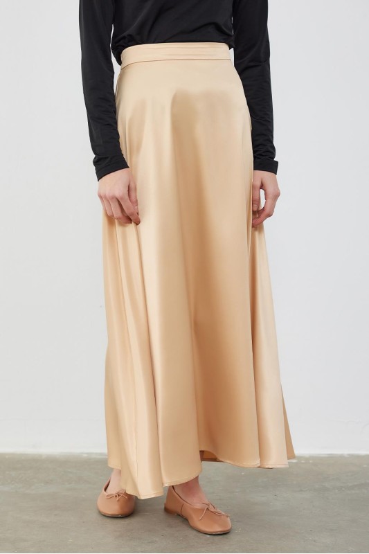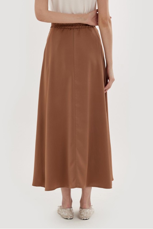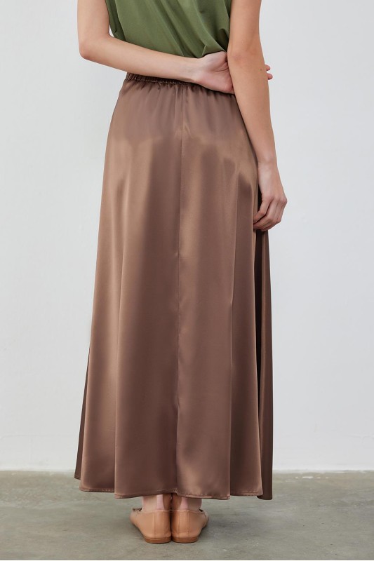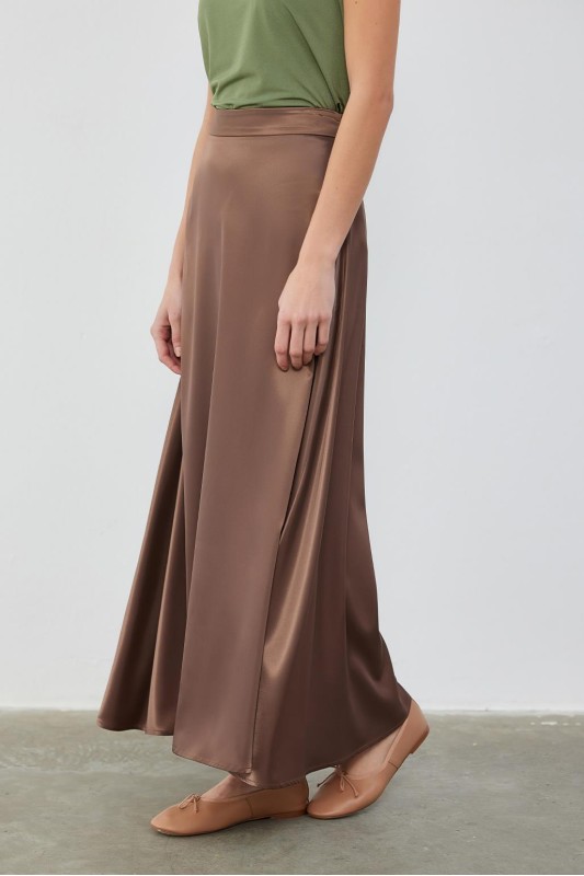 Dena Saten Kloş Etek Kahve
