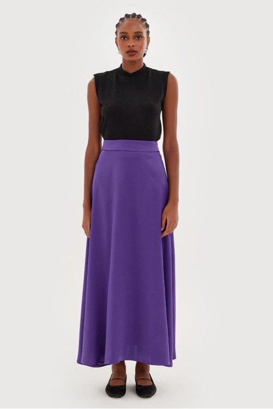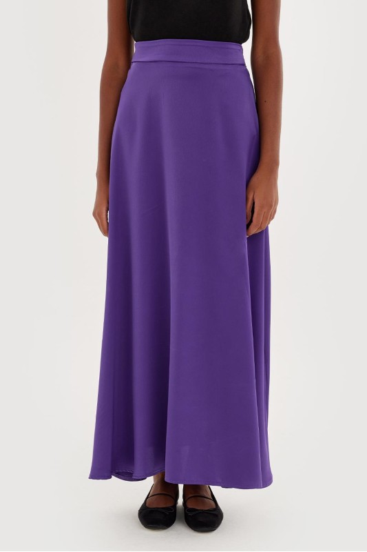 Dena Saten Kloş Etek Mor