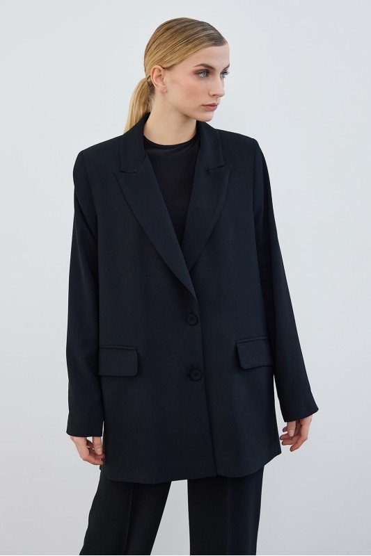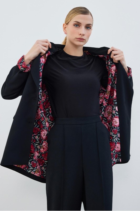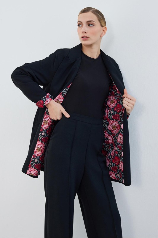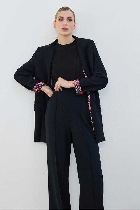 Dena Desenli Ceket Pantolon Takım Siyah