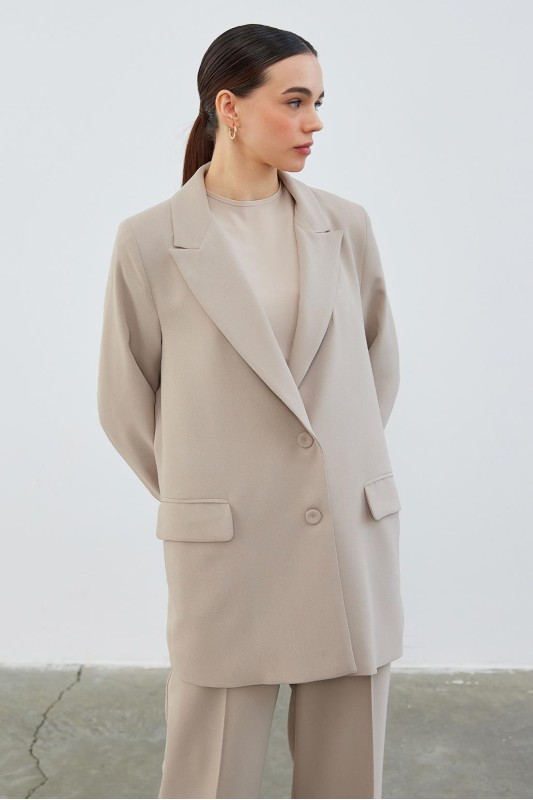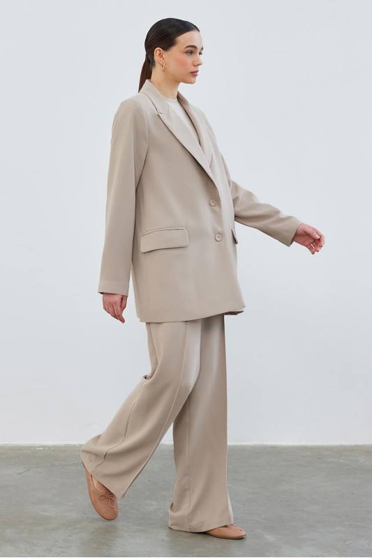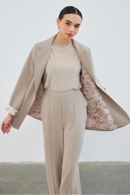 Dena Desenli Ceket Pantolon Takım Vizon
