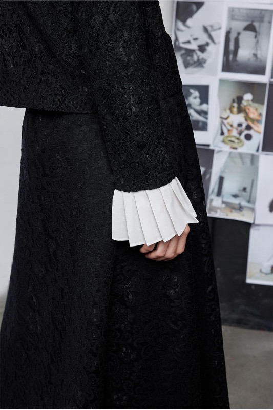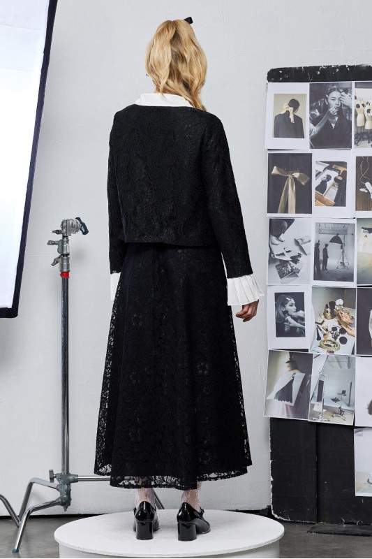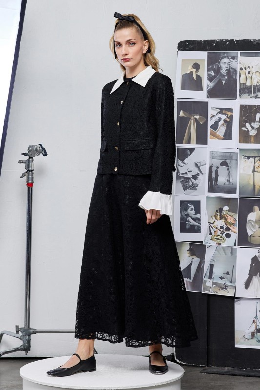 Dantel Pilise Kol Detaylı Ceket Çan Etek Takım Siyah
