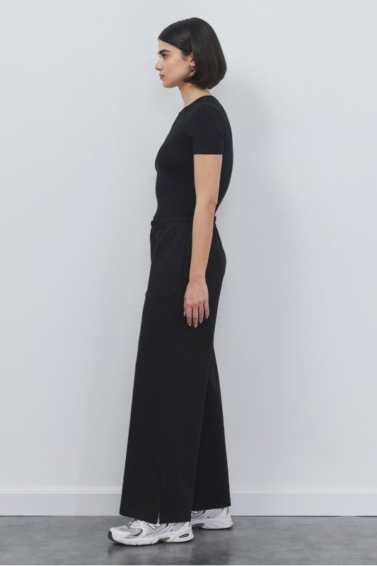 Dania Yüksek Bel Yırtmaçlı Bol Pantolon Siyah