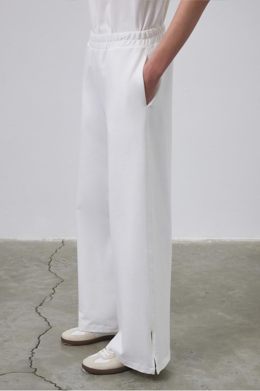 Dania Yüksek Bel Yırtmaçlı Bol Pantolon Ekru