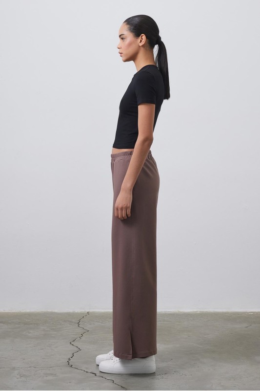 Dania Yüksek Bel Yırtmaçlı Bol Pantolon Kakao