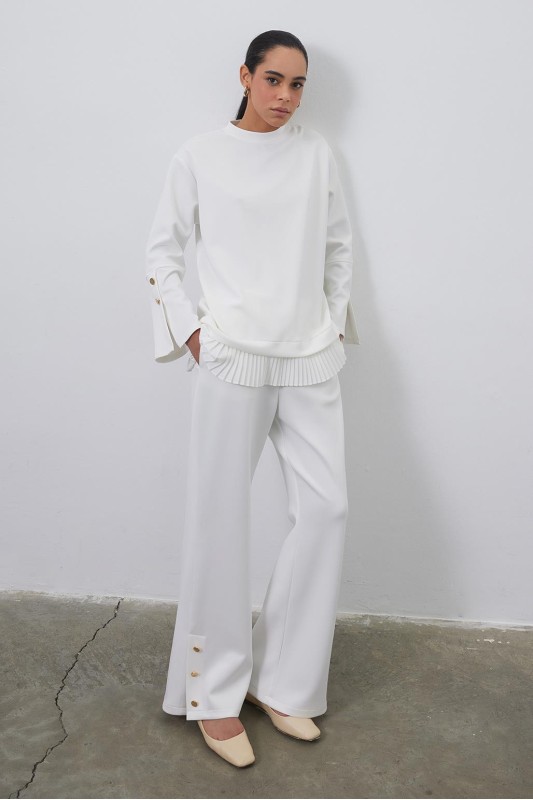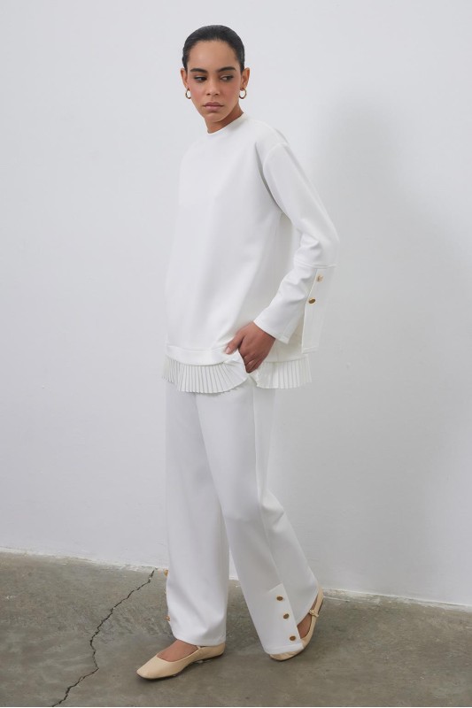 Debra Pilise Detaylı Yırtmaçlı Tunik Pantolon Takım Ekru
