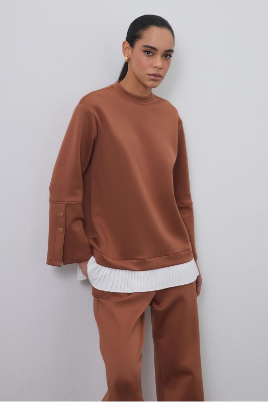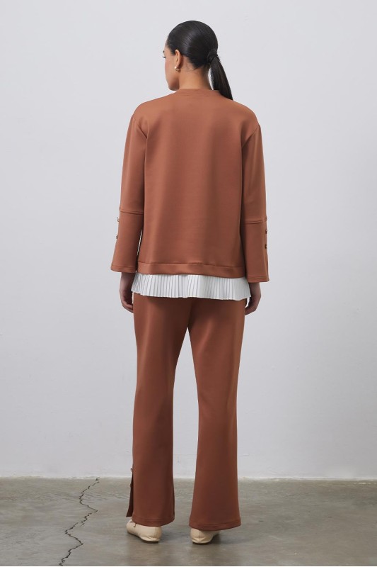 Debra Pilise Detaylı Yırtmaçlı Tunik Pantolon Takım Kahve