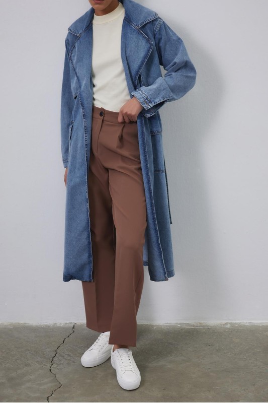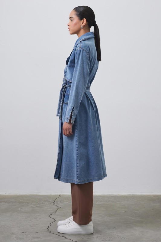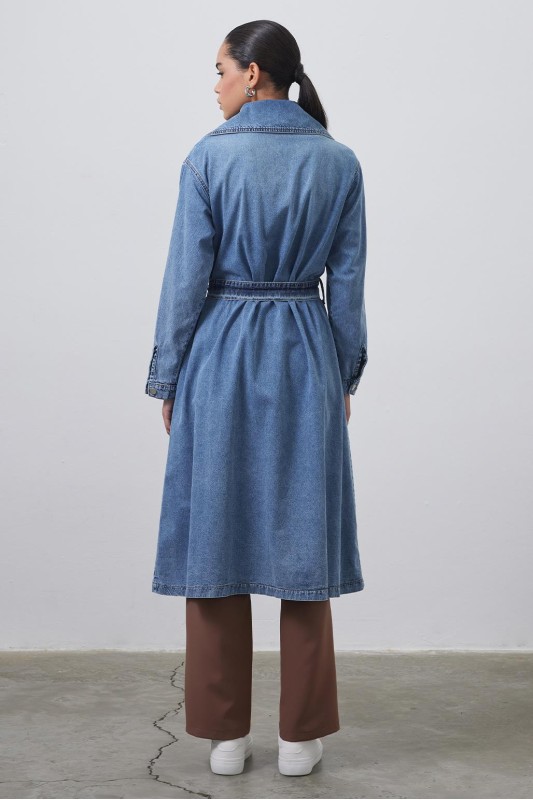 Denim Allerli Trençkot Açık Mavi