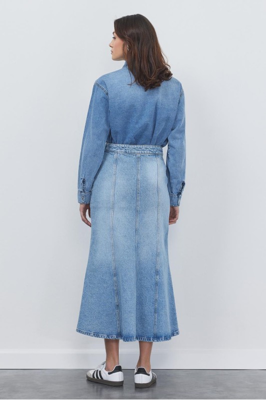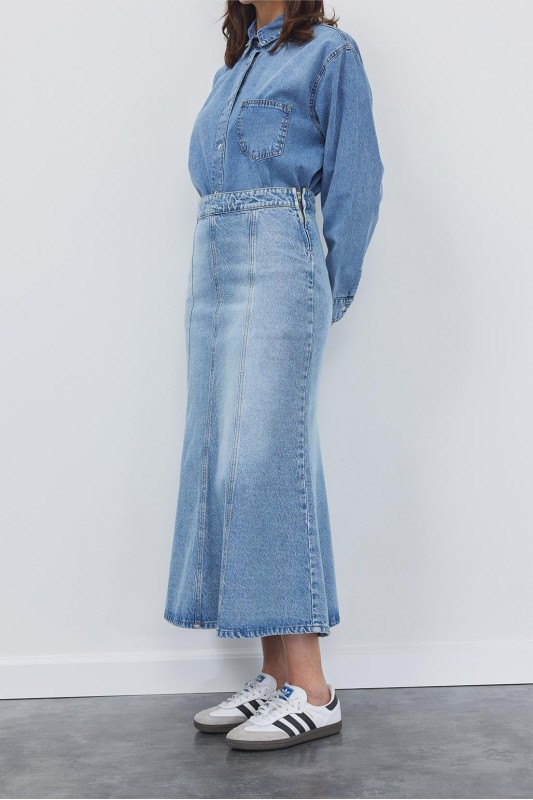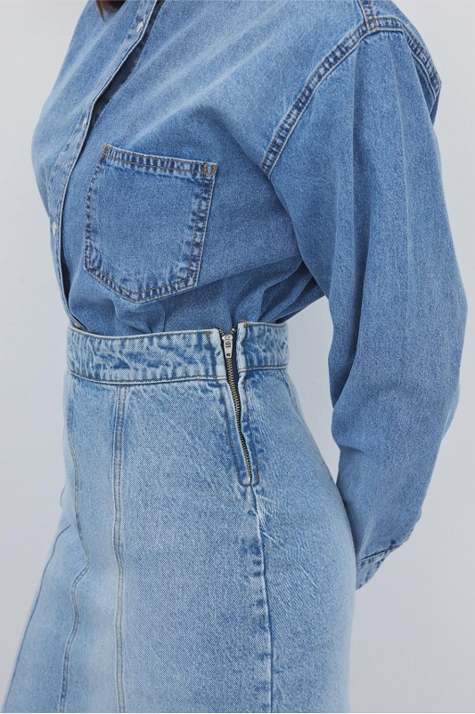 Denim Balık Form Etek Açık Mavi