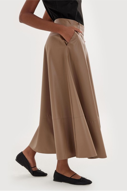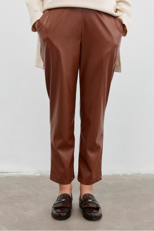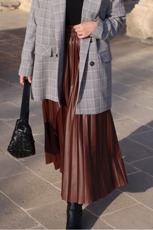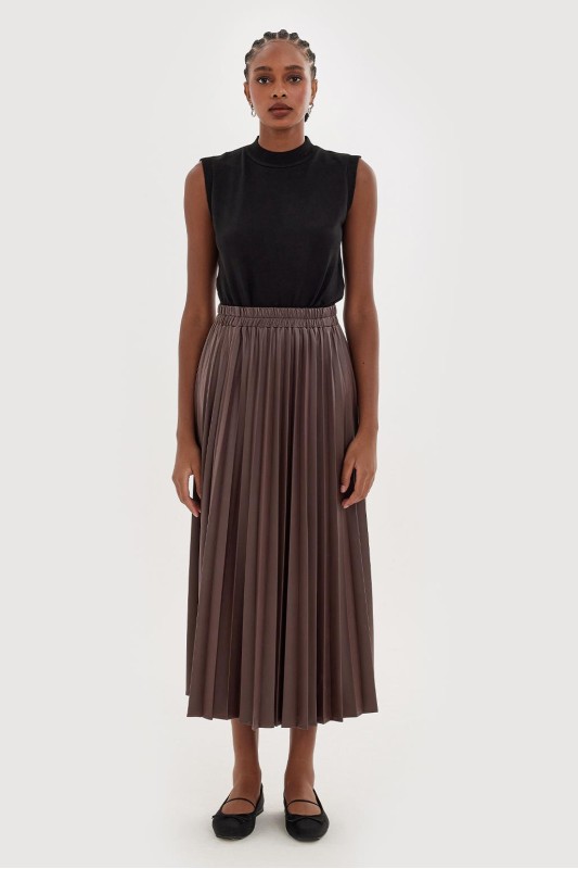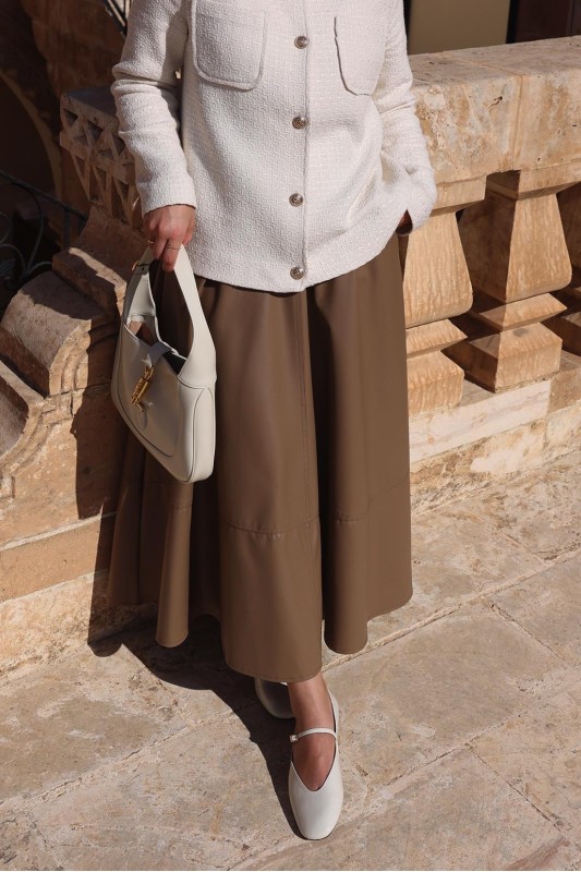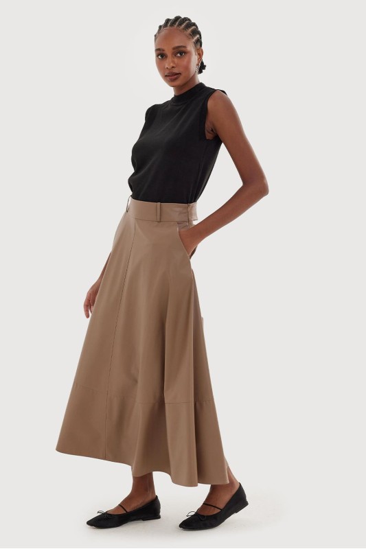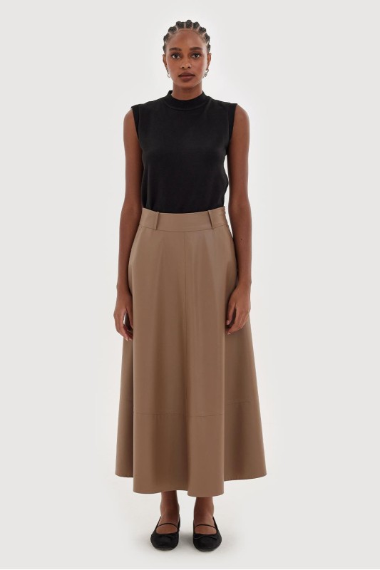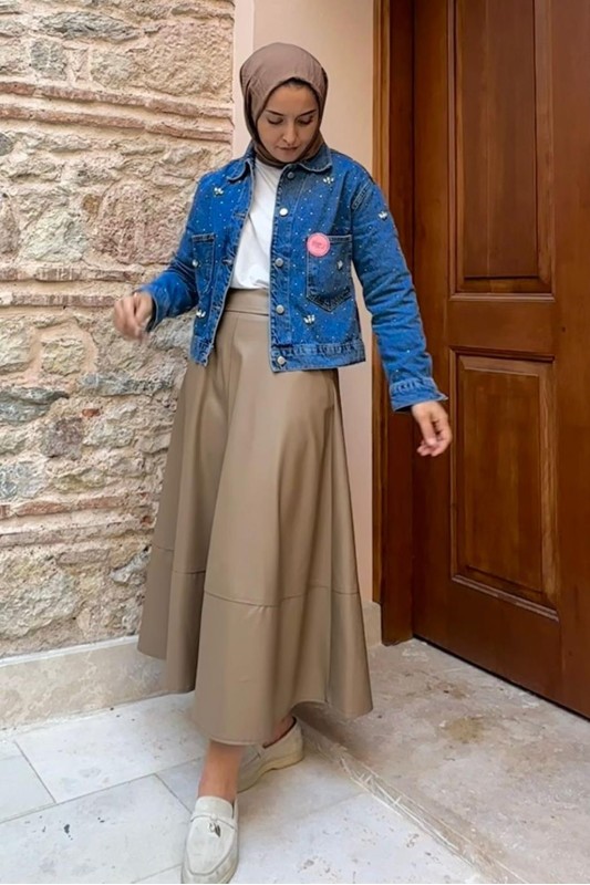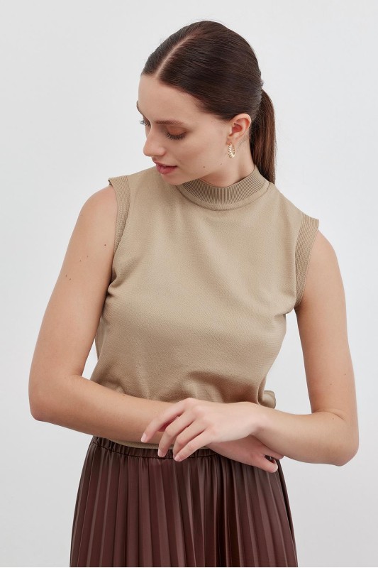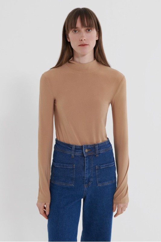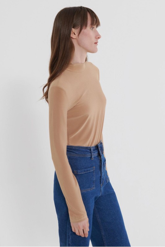 Dik Yaka Basıc Uzun Kollu Cotton Bluz Camel