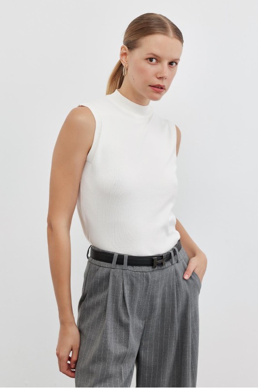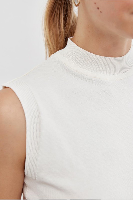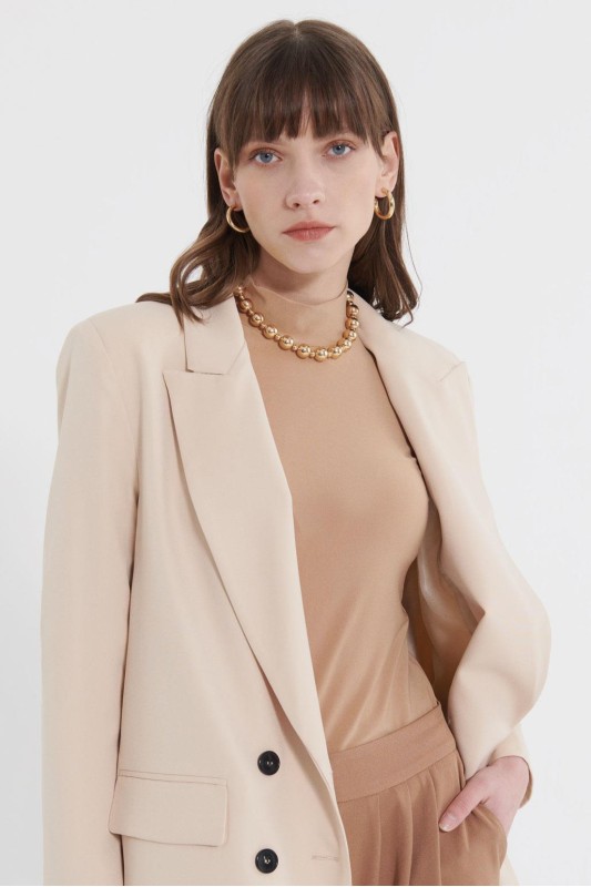 Dik Yaka Basıc Uzun Kollu Cotton Bluz Ekru