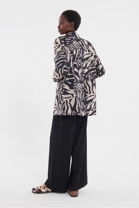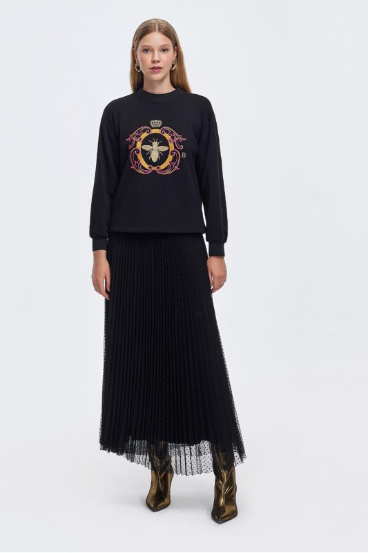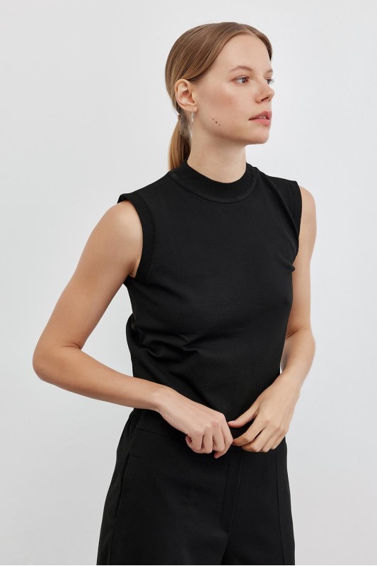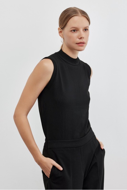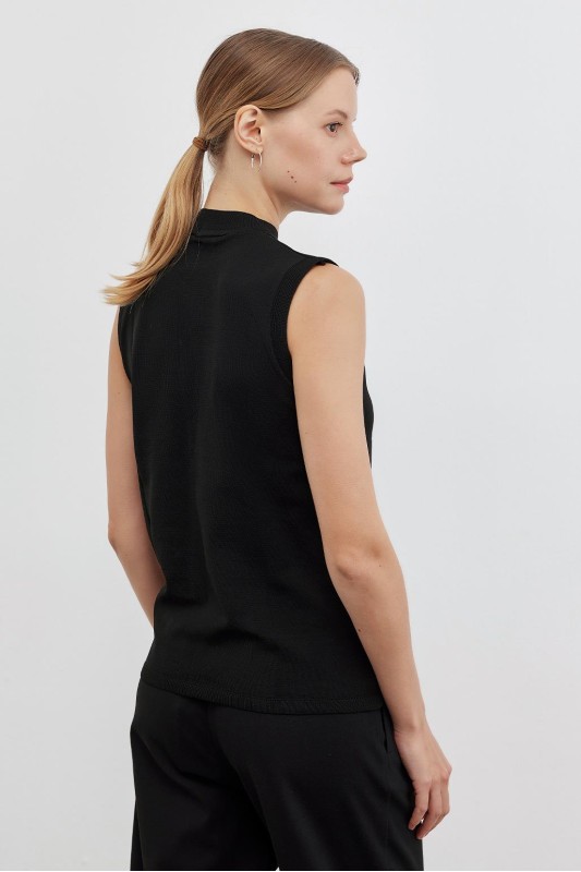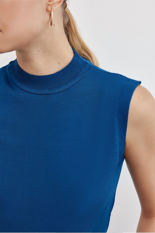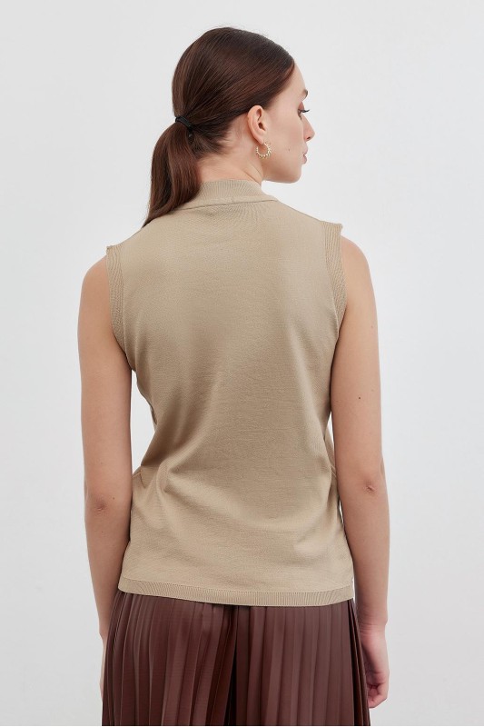 Dik Yaka Buzy Uzun Kollu Basıc Bluz Camel